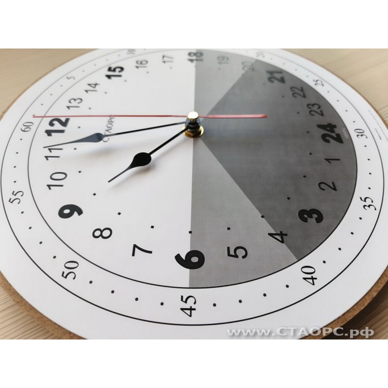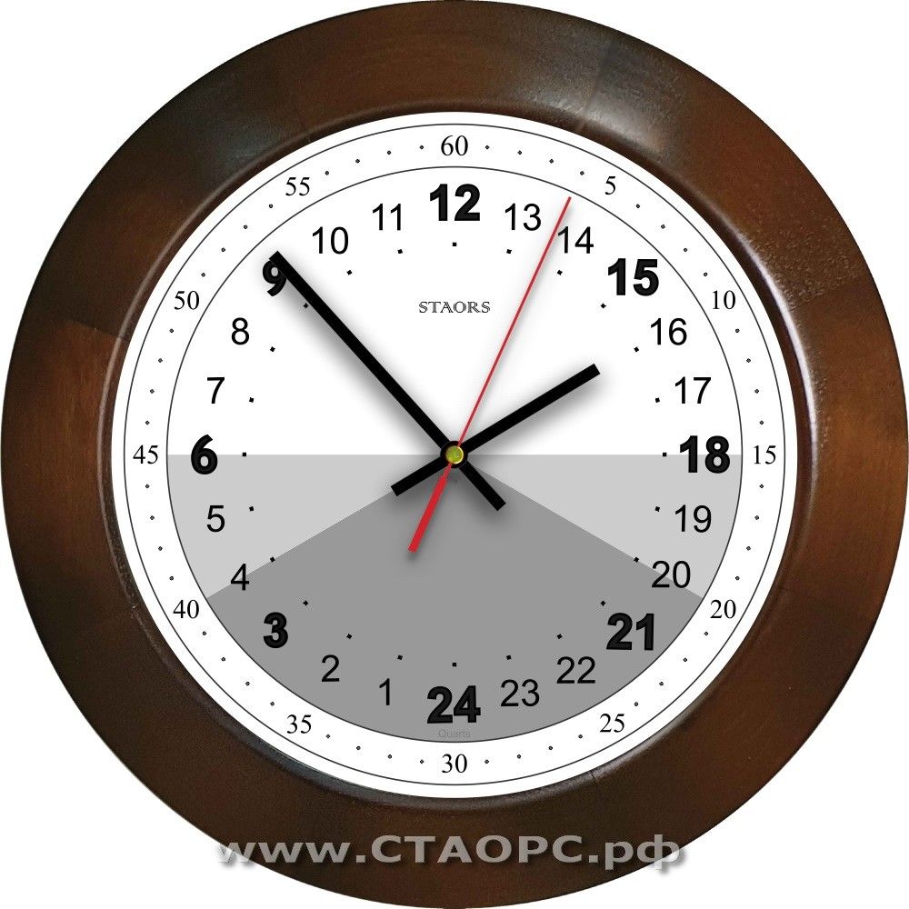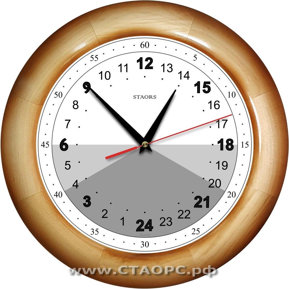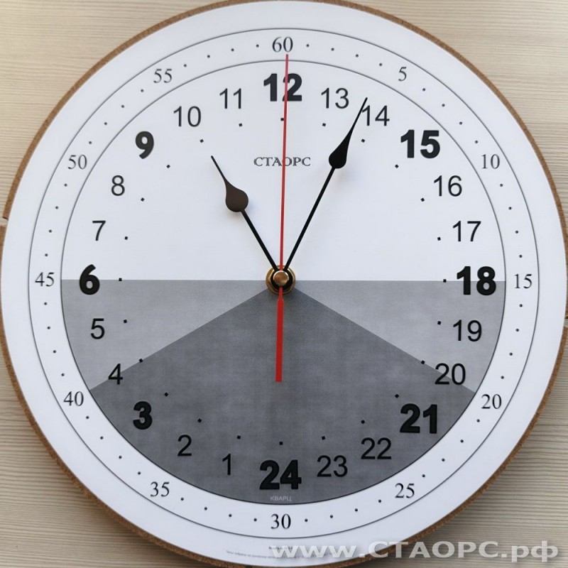 У этих часов расположение полудня (12 часов) - в верхней части и 24 часов (полночи) - в нижней.